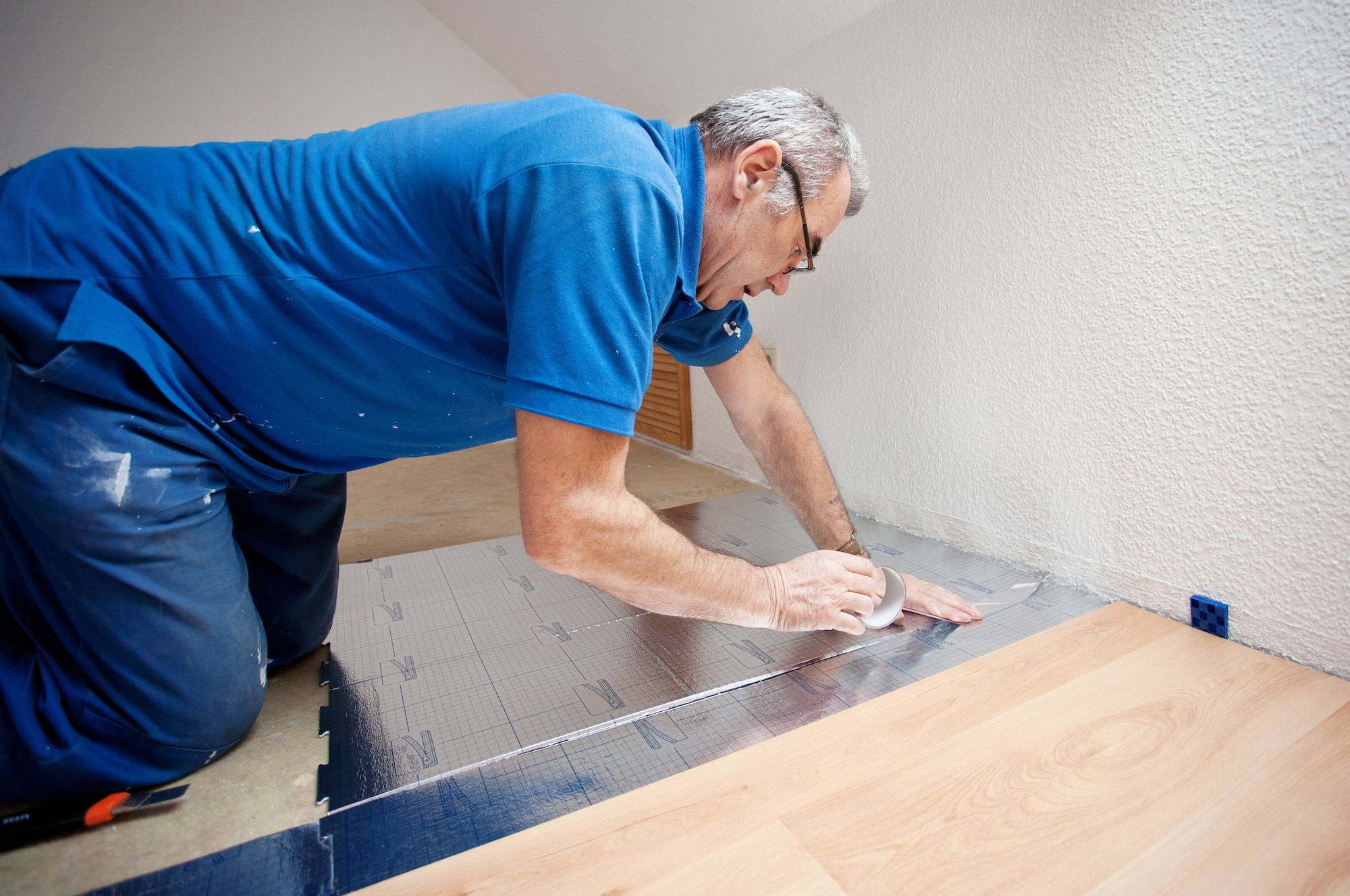 - Verlegung: Rollen Sie die Dämmunterlage aus und schneiden Sie sie passend zu. Lassen Sie sie einige Zentimeter an den Wänden hochstehen, um eine vollständige Abdeckung zu gewährleisten.